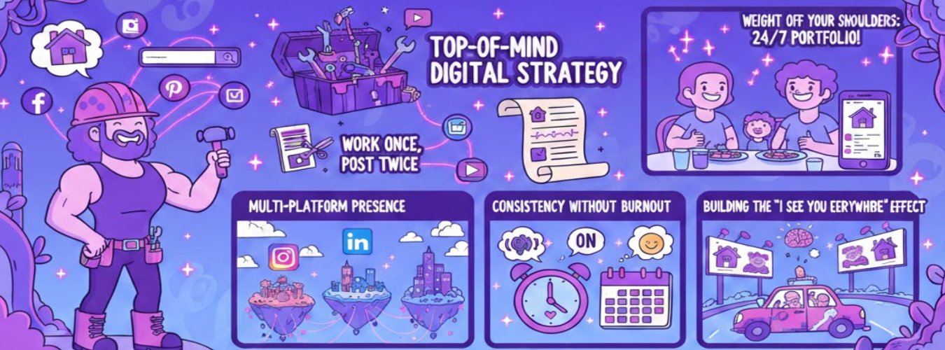 In the renovation business, “out of sight is out of mind.” Most Canadian homeowners spend months—sometimes years—thinking about a project before they actually pull the trigger. If you only show up when they search Google, you’re competing on price. If you’ve been showing up in their social media feeds for months with great-looking work, you’re the trusted friend they’ve already decided to hire.